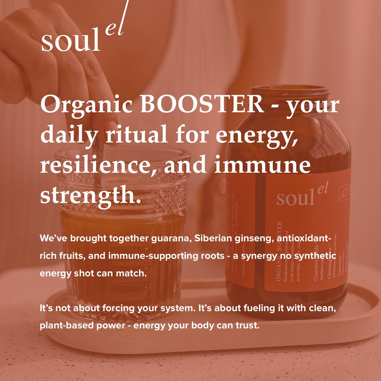 Organic BOOSTER is not a typical stimulant or a caffeine bomb. It is a whole-plant formula in which plants work synergistically — nourishing the body rather than artificially “switching it on.”