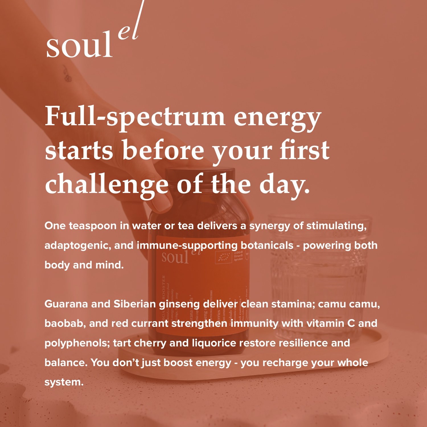 "Soulel naturally became part of my daily routine. I start every day with the Soulel energy booster, and the results are noticeable when you use it consistently. I highly recommend it!"
