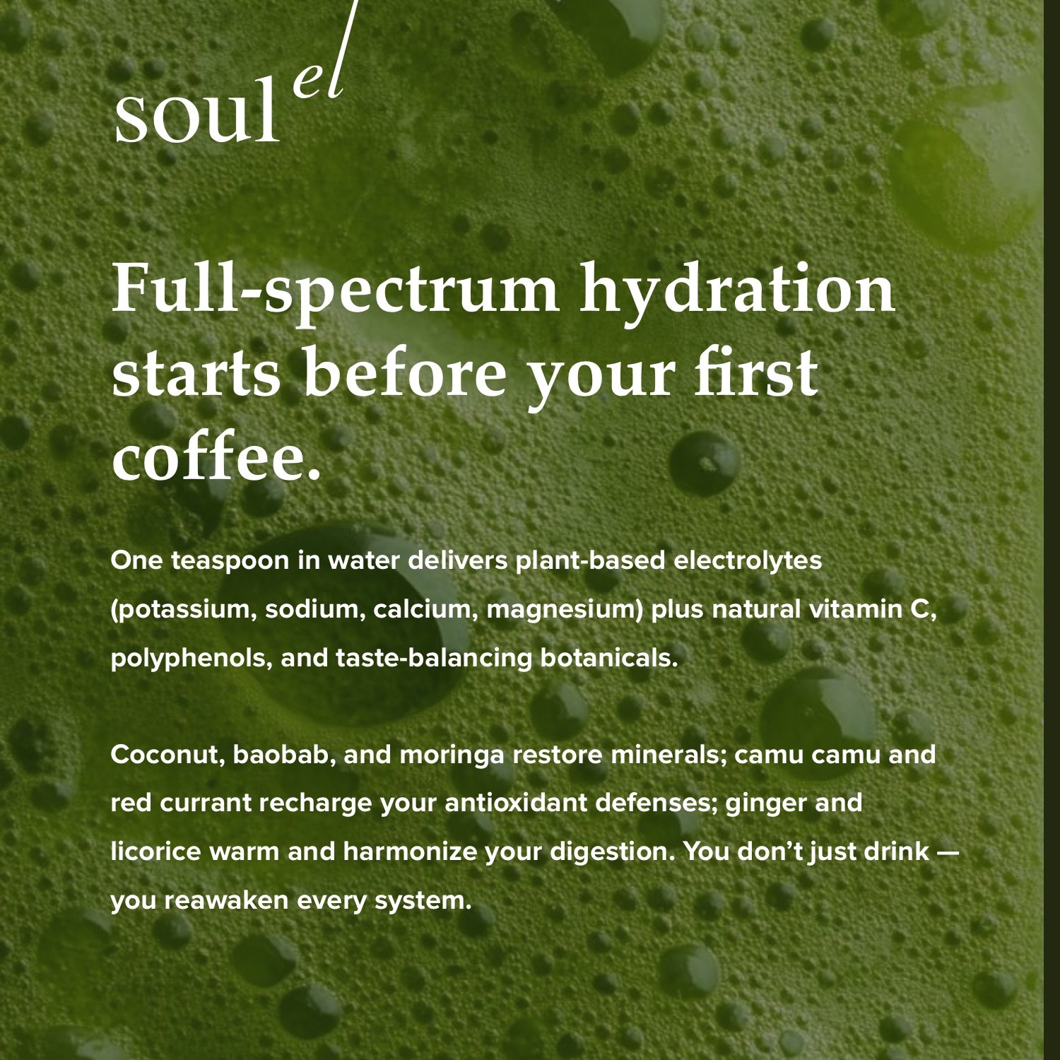 "This is just the beginning of my journey with Soulel, and it started with the Dirt blend — what a pleasant surprise. I’m very mindful about what I put into my body, and the Dirt drink I make every morning has quickly earned a permanent spot on my must-have shelf. It may sound simple, but I truly can’t imagine my mornings without this gently energizing ritual."