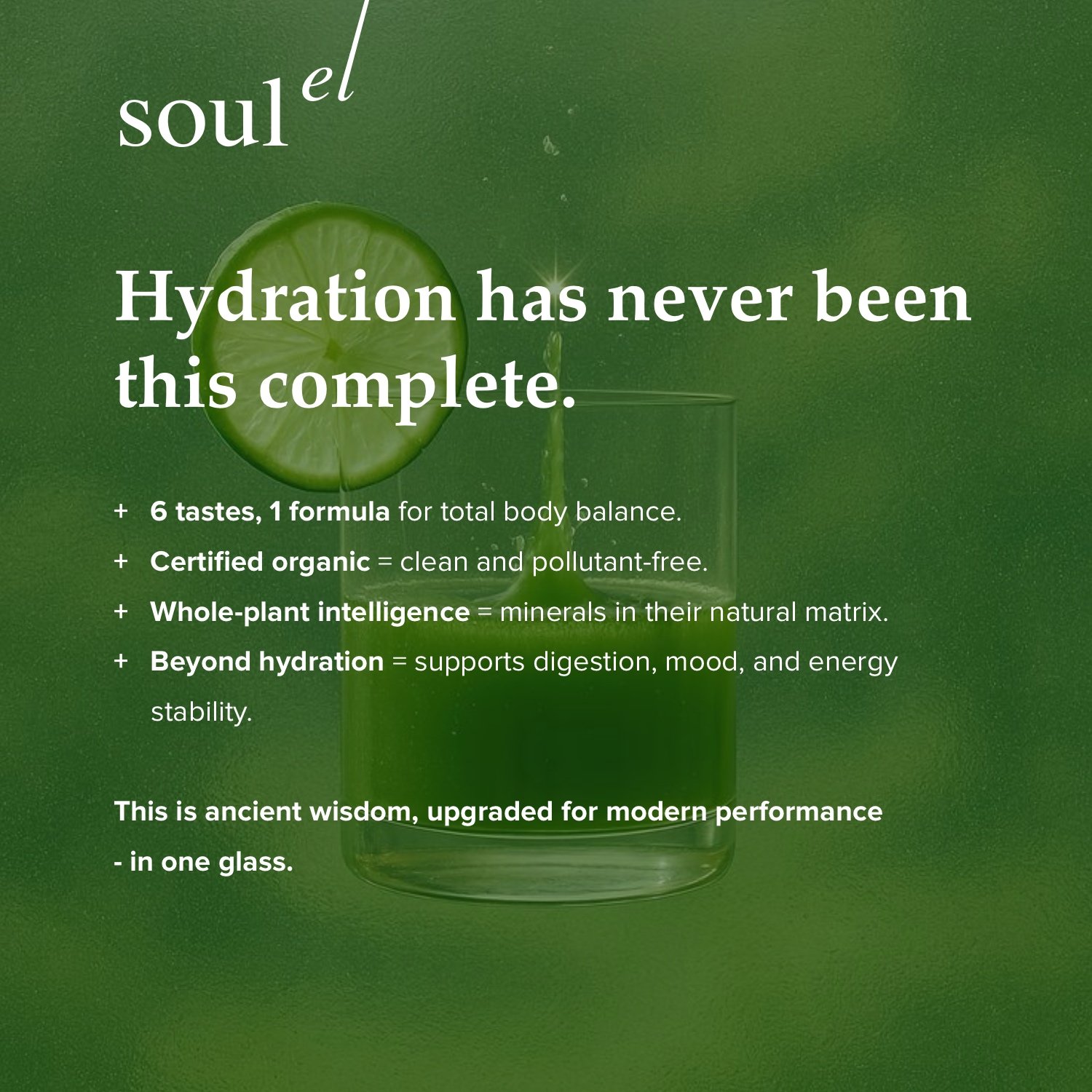 100% certified organic plants delivering nature’s own electrolyte matrix, absorbed the way your body understands.